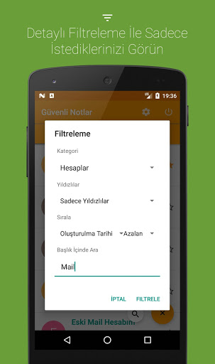 Tüm özel bilgilerinizi bu uygulama ile güvenle saklayabilirsiniz. “Güvenli Notlar” girdiğiniz bilgileri, sizin belirlediğiniz anahtar ile şifreler.