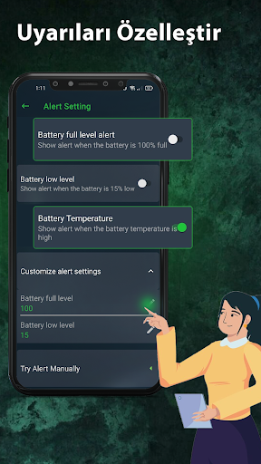 Özel Cihaz Bildirimi özelliği sayesinde cihazınızın uyarılarını kolayca denetleyin. Bildirim Ayarları ile uyarıları kişiselleştirin ve istediğiniz gibi yapılandırın. Uyarıları kolayca Açık veya Kapalı konumuna getirin. Uygulamanın önyükleme sırasında Başlatma Zamanında Başlat seçeneği ile başlamasını sağlayın. Şarj edilirken veya edilmezken alınan bildirimleri özelleştirin. Basit veya büyük simgeler arasından seçim yapın. Uyarıların yönetimini üstlenin ve cihazınızın bildirim sisteminin performansını optimize edin.