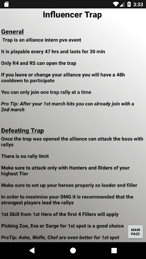 Oyunda yeni olduğunuzda, SOS Wikicalc, GameMechanics, Etkinlikler, PVP ve PVE dövüşlerine alışmaya yardımcı olacaktır.