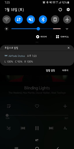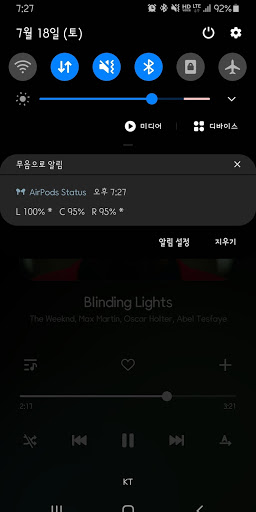 Shows a simple text notification with AirPods(AirPods Pro) battery status when changed it