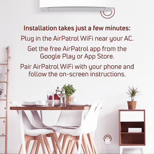 AirPatrol WiFi evinizin kablosuz Wifi ağına bağlanır ve klimanızı akıllı telefonunuzu kullanarak istediğiniz yerden kontrol etme imkanı sağlar!