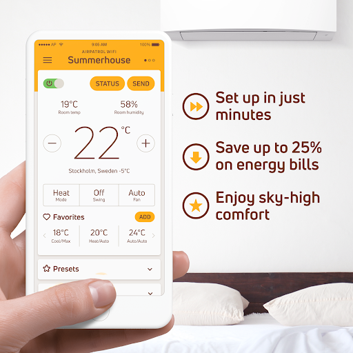 Kurulumu birkaç dakikanızı alır ve neredeyse tüm klima ve akıllı telefonlarla uyumludur.