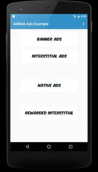 This App demonstrates the different types of Ads available in AdMob. They are as follows:- 1)Banner Ad 2)Interstitial Ad 3)Native Ad 4)Rewarded Interstitial Ad Please ensure that your device is connected to an INTERNET.