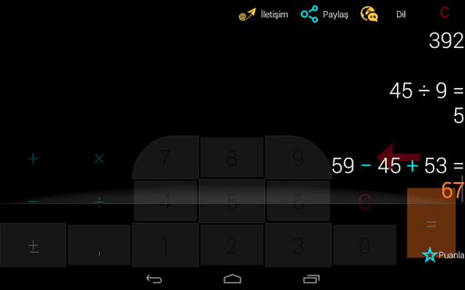 Günlük hayatta sadece ihtiyacınızın olacağı kadar, dört işlemi kapsayan, şıkça hesaplamalar yapabileceğiniz ve ayrıca degişik bir hesap geçmişinin bulunduğu, farklı türden bir hesap makinesi.