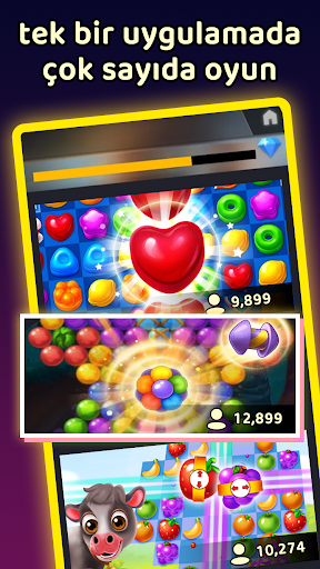 - Gol atma, şekerleri temizleme ve malzemeleri toplama dahil 3'lü eşleştirme oyun modlarını ve daha fazlasını oynayın.