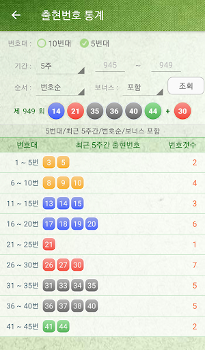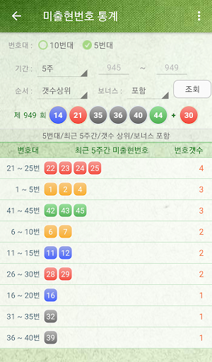 - 당첨번호별, 출현, 미출현 통계 개선