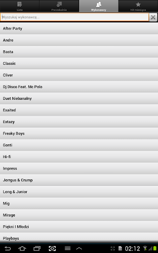 * wykonawcy - lista wszystkich utworów, jakie kiedykolwiek były dodane do listy przebojów.