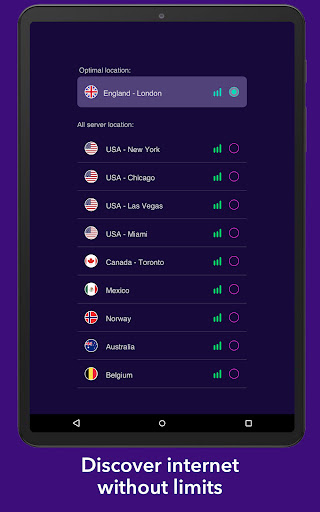 VPN uygulaması, kullanıcılara, kayıt veya konfigürasyona bile ihtiyaç duymadığı VPN proxy servisleriyle sağlayan uygun ve hızlı bir uygulamadır.Kurulumdan hemen sonra, internete anonim olarak, güvenli ve güvenilir bir şekilde bağlayabilirsiniz.