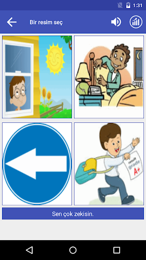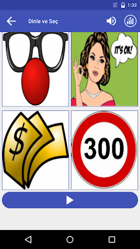 - Bir kelimeyi veya bir cümleyi dinleyerek dörtten bir resim seçin.