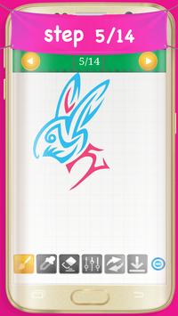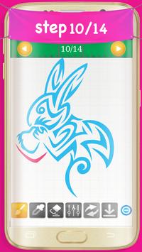 the method is very simple just as downloading the application “how to draw tatoo” loaded on your phone "android" then select the animal you like ,you will see all steps .install the application and tells us how you found ..