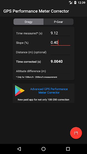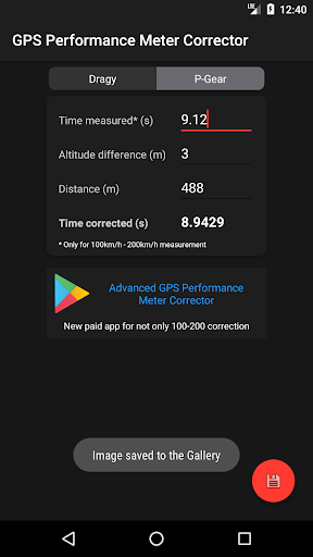 Sürükle ve P-Gear 10Hz GPS Performans Ölçer Düzeltici. Sadece 100km / sa ila 200km / h ölçümleri için. Ekranı galeriye kaydedebilirsiniz.