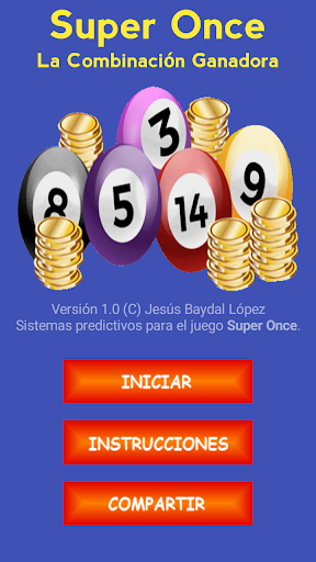 Aplicación para la generación de Combinaciones para el juego Super Once. Se utilizan cuatro sistemas de los cuales uno es totalmente aleatorio y los otros tres generan combinaciones de 5, 7, 9 y 11 números mediante algoritmos matemáticos y sistemas de predicción.