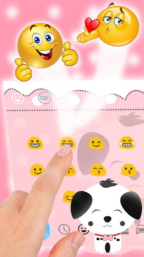 ❤ ❤ ❤ Want to have Cute Pink Puppy Emoji Keyboard with baby pink keyboard pink? Get this pink lovely puppy keyboard theme for your pink girls android keyboard free. Cute Pink Puppy Emoji Keyboard has girlish pink keyboard and love cute little puppy background.