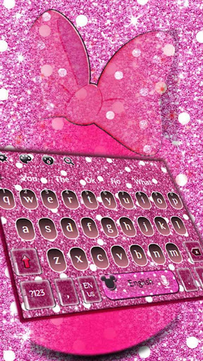 • Pink cute Glitter Minny Keyboard Theme is brilliantly cute and lovely app for phones and tablets that has many Pink sparkly glitter bowknot keyboard skins for you.
