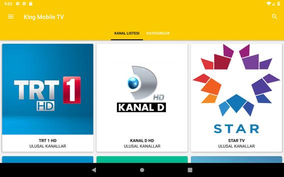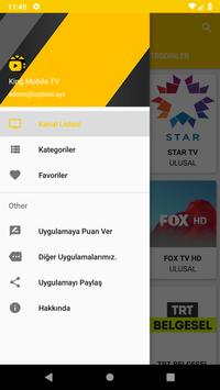 King Mobile TV; Kullanıcılarına hd canlı tv izleme imkanı sunmaktadır, 100'den fazla yerli, yabancı, çocuk, sinema, spor ve dini televiz yon kanalını mobil cihazlarınızda izleyebilmeniz için imkan sağlamaktadır.