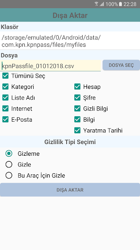 Txt , csv dosyalarını dışa aktarın veya kpnPass Şifre Yöneticisi 'ne aktarın