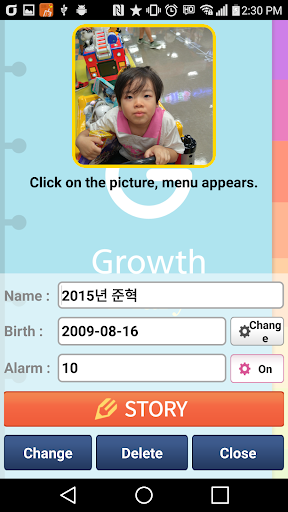 The application is not limited to be used for the record of children’s growth, but also can be used to record the timeline and event of relationship between lovers as well as for other cases that need to be checked periodically.