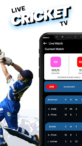 Full Description : Best Live Cricket Score app for Cricket fans and live match followers. Get live Cricket match score updates on your mobile for all International matches, T20 leagues. This app provides fast score updates and you will be able to check ball by ball runs and other live score stats.