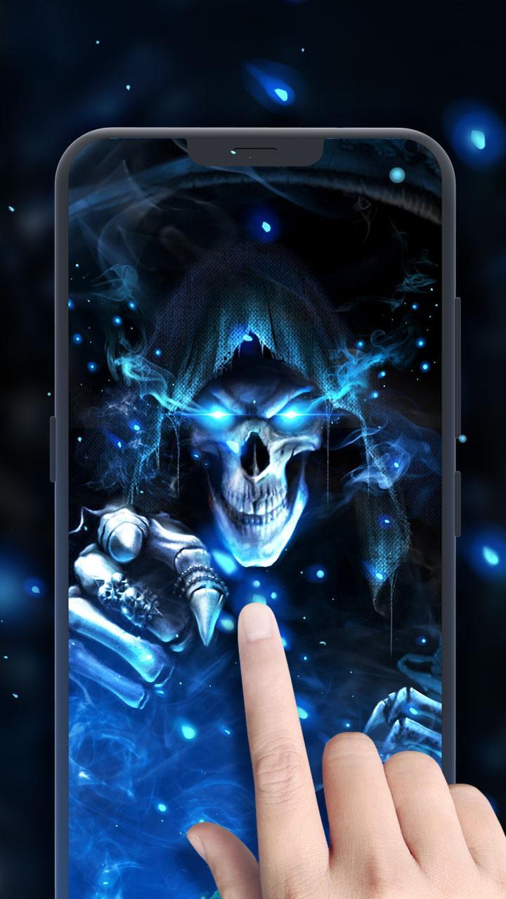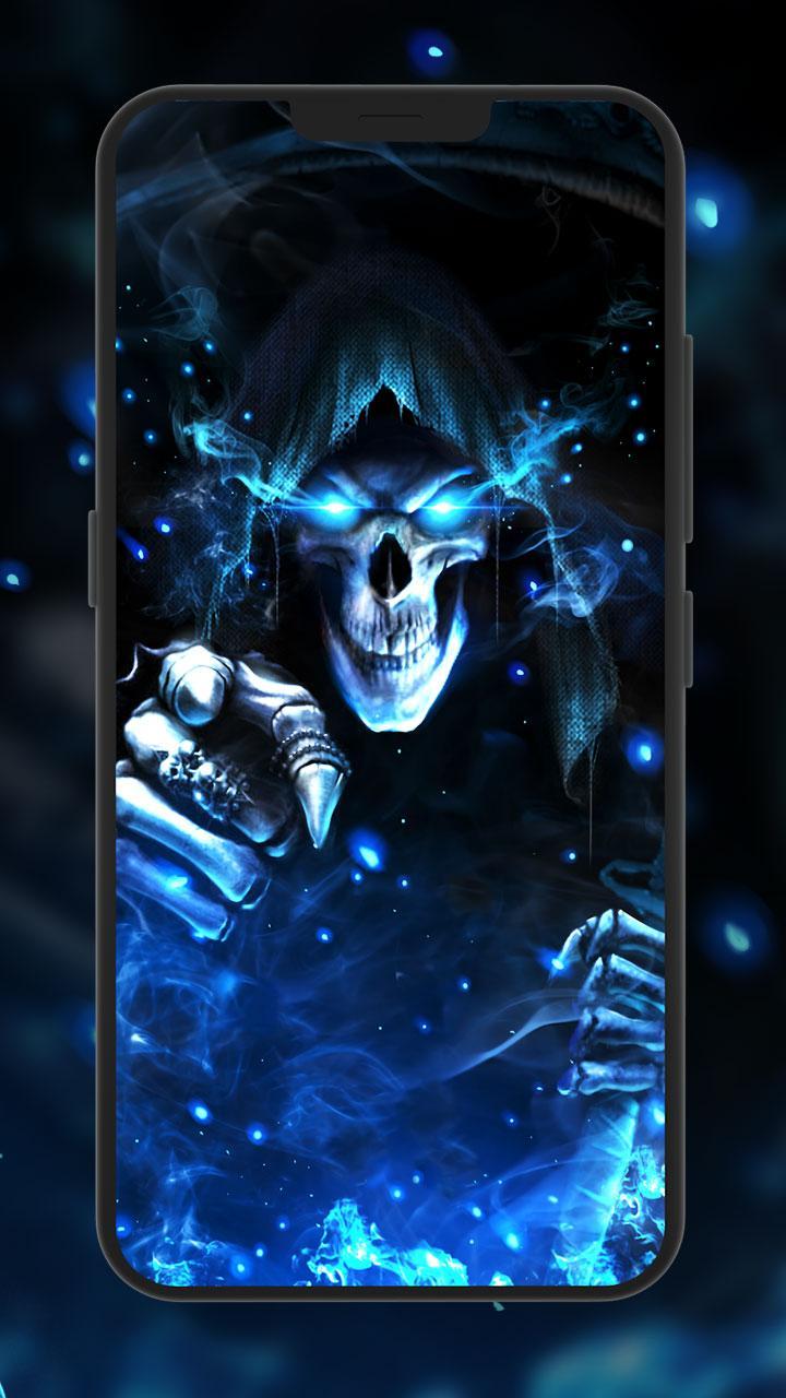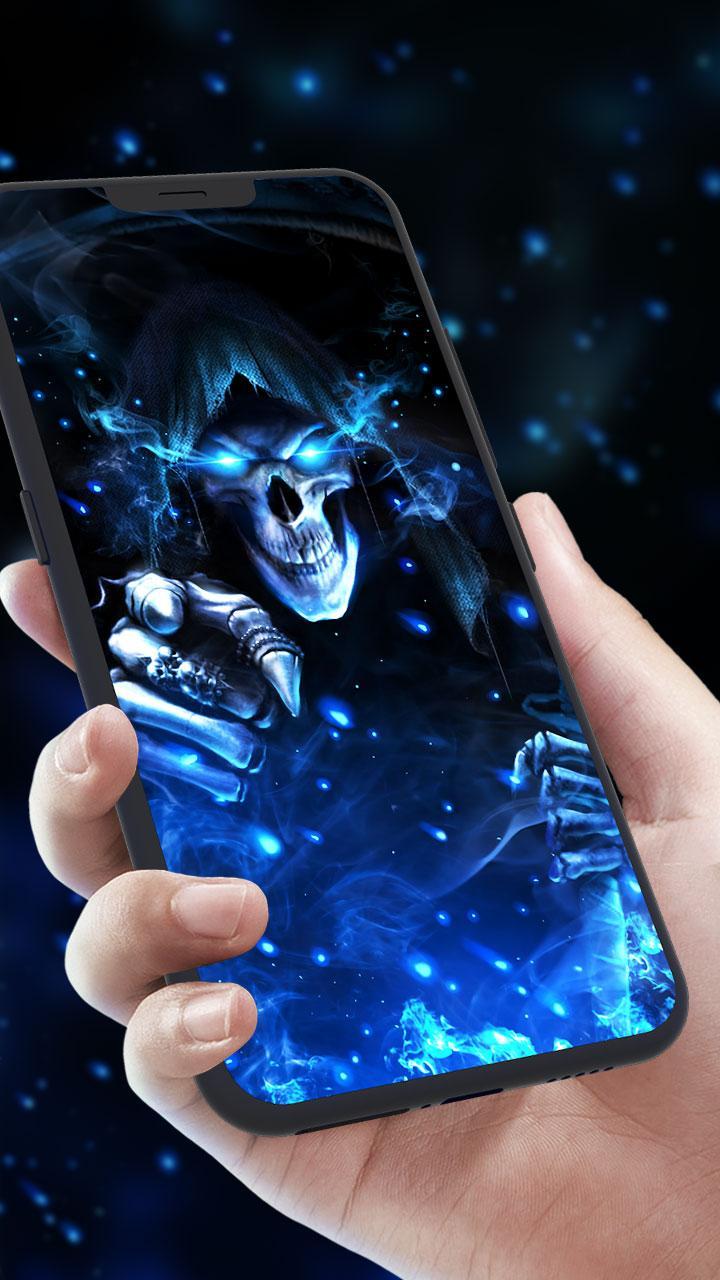 ? The fantastic gloomy Flaming Grim Reaper Live Wallpaper is designed for those who love cool awful skull bones or horrible gloomy grim reaper, especially the fantastic fiery blue flaming grim reaper!
