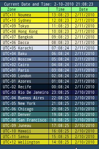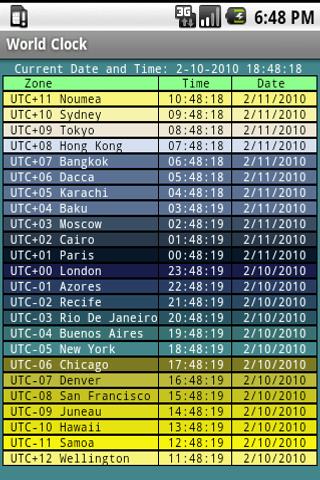 Shows the Current time around the World World Time1.1 Fix DST Daylight Saving Time Adds AMPM and Day of the Week; 1 5 AdMob Update 1.4 Faster Loading and AdMob Update 1.3 AdMob UpdateShows the Current time around the World World Time Time Zones. quot;UTC08 Hong Kongquot;, quot;UTC07 Bangkokquot;,quot;UTC06 Daccaquot;,quot;UTC05 Karachiquot;...