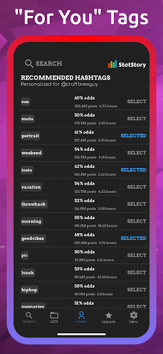 Aslında, herhangi bir HASHTAG için sıralanmanız gereken olasılıkları gösterir - ortalama birleşme ve etiketten çıkışsallık gibi diğer metriklerle birlikte. Doğru hashtag'ı seçin ve insta büyümenizi izleyin!