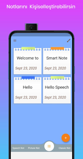 Fotoğraftaki yazıları not haline getirebileceğiniz ve konuşarak not alabileceğiniz , kullanımı kolay renklendirilebilir her bir not için ayrı özelleştirme kullanabileceğiniz ücretsiz not defteri