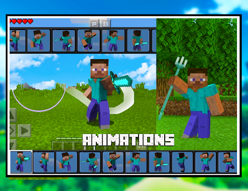 Animasyonlar Player Mods McPe, blok dünyasında kahramanınıza animasyonlar ekliyor!Minecraft için bu eklentiler oyununuzda daha gerçekçi karakter davranışı sunar.Tüm oyuncu modelleri ve kaplamalar için animasyon çalışması, çok oyunculu desteklenir!5 animasyonun tamamı: Yürüyüş, Sprint, Atlama, Çılgın Sprint, Piksel Dünyanızda Tanıdığınız Yeni MCPE Modlarında Balıkçılık!Daha canlı bir davranış, pürüzsüz hareketler.Tüm oyuncu modelleri ve derilerle çalışır.Minecraft için bu eklentiler oyununuzu daha çeşitli ve ilginç hale getirecektir.Piksel dünyasında hayatta kalmak daha gerçekçi olacak, düşmana karşı zafer açık!, biyolojik optimizasyon, ek vücut hareketleri, savunma animasyonu!BR>- Yeni modları sık sık güncelle