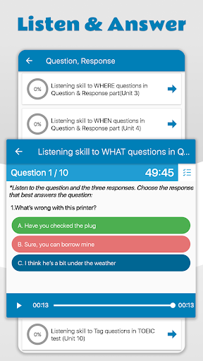 TOEIC Practice Test study app will be very useful for you, help to improve your learning English skills, give more efficient the way you study. Moreover, it makes a well-prepared solution for your TOEIC examinations later.