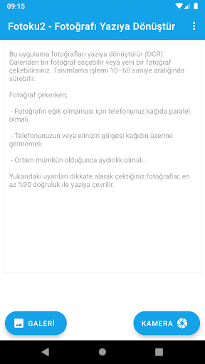 Galerinizden seçeceğiniz veya anlık çekeceğiniz fotoğrafları yazıya dönüştürün.