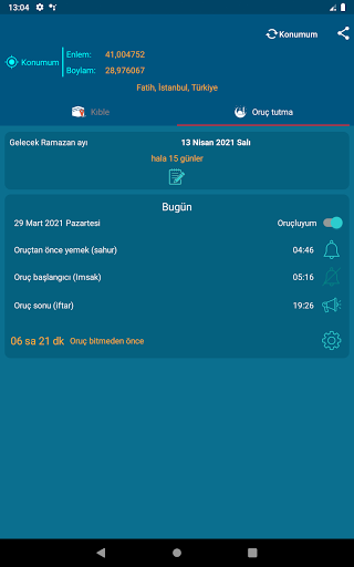 Kıble yönü ile orucun başlangıç ve bitiş saatlerinin hesaplanması coğrafi konumunuza göre yapılır.