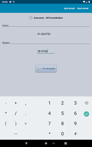 Size kolaylık sağlamak için, uygulama coğrafi konumunuzun GPS koordinatlarını otomatik olarak algılayabilir. Tek yapmanız gereken «Konumum» düğmesine dokunmak.Ancak, gizliliğinizi korumak için: