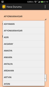 İl il hava durumu uygulaması, Türkiye'nin tüm şehirlerini listeden seçerek günlük hava tahminini görmenizi sağlar. Havanın o anki derecesini de görme imkanı sunar.