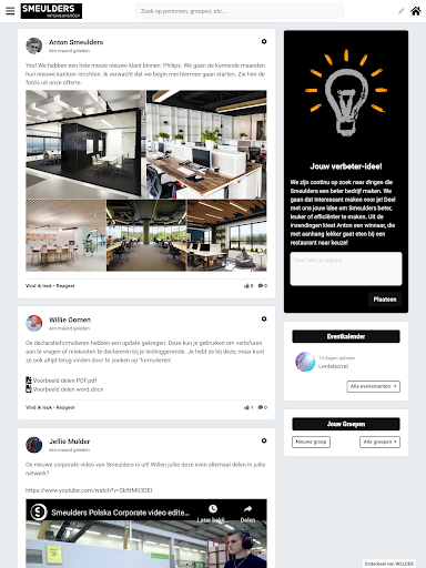 SMEULDERS uygulaması;Siz ve meslektaşlarınızın yeni bilgi, fikir ve başarılar paylaşmaları için sosyal platform çok kolay ve hızlı bir şekilde.Zaman çizelgeleri, olay takvimi, gruplar, push bildirimleri ve özel topluluk promosyonları gibi yararlı özellikler sayesinde, işvereninizde olan her şey hakkında gerçek zamanlı olarak bilgilendirileceksiniz.Bu şekilde organizasyonla ilgilenirsiniz ve meslektaşlarınız Kris Kras'a kuruluş tarafından bağlanırsınız!Birlikte hoş ve sağlam bir şirket kültürü oluşturursunuz. -down iletişimi, buttom-up için