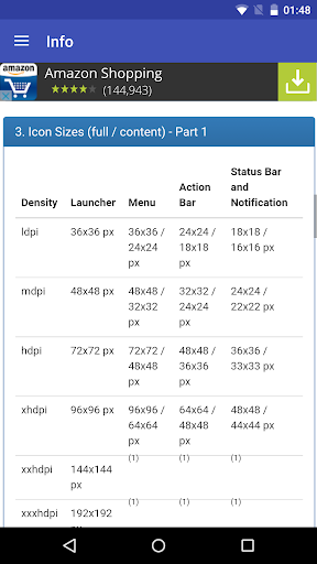- a summary about resolution, screen density and icon size, just to easy consultation.