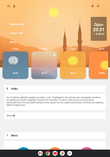 Bu uygulama, referans için yaklaşık namaz vakitleri, ezan, namaz yönü (kıble), tüm Kur'ân-il Kerîm ve islâm hakkında bilgiler gibi müslümanların günlük ihtiyaçlarını sağlayacaktır.
