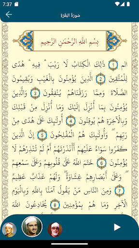 Kur'ân-il Kerîm ,Muhammed Siddik Al-Minşevi, عAbdul Bâsit عAbdul Samad ve Mahmoud Khalil Al-Husari gibi çeşitli okuyuculara adanmış tüm ses ve videolarında mevcuttur.