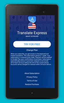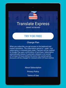 Translate Express is a simple yet powerful tool to translate text and even to have real-time translated conversations. You can also translate the messages you receive from someone. Try to communicate in more than 30 languages with people from different regions of the world. The application works for iPhone, iPad and iPod touch. Choose from different subscription options: 1 Month Subscription 1 Week Subscription and 3 Months Subscription with a free trial period will automatically renew to a paid subscription. Please note: any unused portion of a free trial period (if offered) will be forfeited when you purchase a premium subscription during the free trial period. You can cancel a free trial or subscription anytime cancelling your subscription through your iTunes account settings. This must be done 24 hours before the end of a free trial or subscription period to avoid being charged. Your subscription will automatically renew unless auto- renew is turned off at least 24-hours before the end of the current period Your account will be charged for renewal within 24-hours prior to the end of the current period and the cost will be identified Subscriptions may be managed by the user and auto- renewal. For more information please visit http://express-translate.com/terms.html Privacy Policy: http://express-translate.com/privacy.html