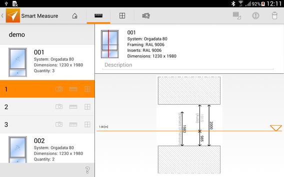 The Orgadata app “Smart Measure” eliminates the use of paper to record site details. LogiKal users are able to export elevations to smartphone or tablet and directly digitise them. It is possible to record site dimensions of each elevation and adjust them in the app. The app is able to process photos taken on-site for the user to assign dimensions later on. All data is then transferred over the internet to LogiKal in the office. If for instance a meeting follows measuring site dimensions, the data arrives in the office earlier than the person who recorded it.