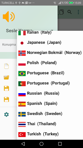 Türkçe dil desteği için konuşma motoru olarak com.google.android.tts kullanmanızı öneririz. Uygulama ayarlarından konuşma motorunu değiştirebilirsiniz, yüklü değilse Google Play'den "Google Metin Okuma" uygulamasını indirebilirsiniz.