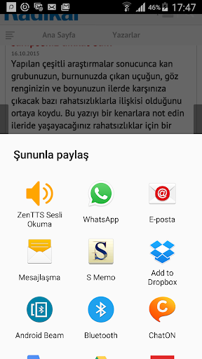 PDF kitapları ve metinleri sesli olarak okutabilir veya bir web sayfasındaki metni seçip "paylaş" butonuna basarak Zen Sesli Metin okuma uygulaması ile dinleyebilirsiniz.