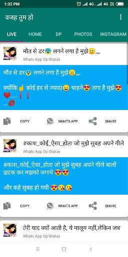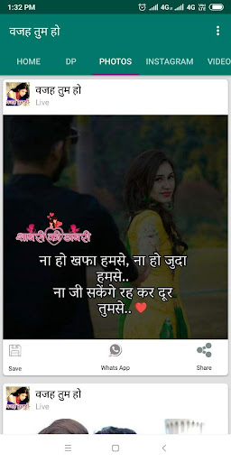 Vaja Tum Ho binlerce statü, Shayari ve Şakalar uygulamaları koleksiyonudur.Yüzlerce farklı kategori statüsü, dp ve şakalar ekledik.Kullanıcı, WhatsApp ve Facebook gibi başkalarıyla ve sosyal medyalarla kolayca paylaşabilir.