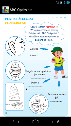 "ABC Optimista" to książka w wersji cyfrowej przeznaczona dla najmłodszych, początkujących żeglarzy oraz ich rodziców, którzy rozpoczynają przygodę z żeglarstwem. Zawiera cenne informacje o zasadach bezpieczeństwa na wodzie, budowie łodzi klasy Optimist, podstawowych manewrach, wiedzy przydatnej przy pierwszych startach w zawodach żeglarskich oraz właściwym ubiorze małego żeglarza. Znajdują się w nim również informację dotyczące udzielania pierwszej pomocy i ekologii środowisk wodnych.