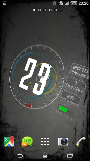 Wallpaper of a clock, calendar and battery indicator - made in 3D technology with the most common mobile devices graphics library OpenGL ES 2. Analog watch in a modern way shows the time. On the right side there is also a calendar and battery charge indicator.