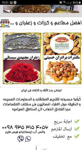 يمكنكم التواصل باللغة العربية مع المرشد والدليل والمنسق (ابو علي) في ايران (مشهد المقدسة) لاغراض العلاج والتجميل والسياحة