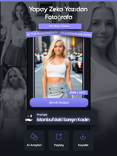 Bu uygulamanın yapay zeka metinden fotoğraf işlevi ile gerçekçi görseller üretilebilir.