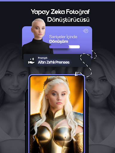 Bu işlev ile uygulamaya bir görsel yükleyebilir ve bir tanım sunabilirsiniz. Ardından sunduğunuz tanıma göre yüklediğiniz fotoğraf uygulama tarafından dönüştürülür. Yani bu uygulama ile yalnızca birkaç adımda fotoğraflarınızı yapay zeka kullanarak düzenleyebilirsiniz.