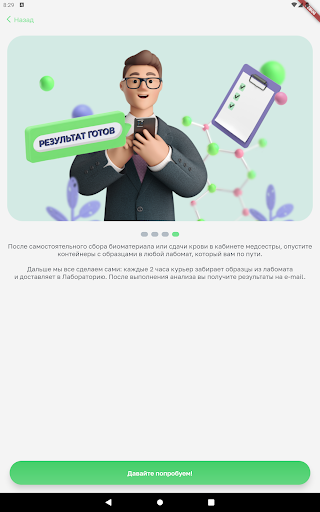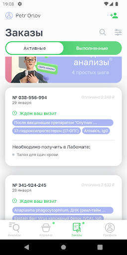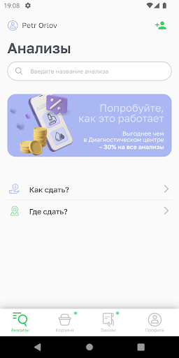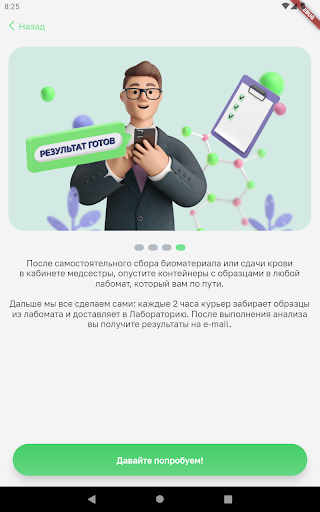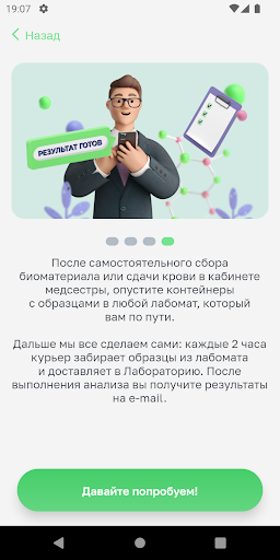 Çevrimiçi tıbbi testler için sipariş verin ve ödeme yapın, labyatlar aracılığıyla biyomalzemeyi teslim edin ve bir mobil uygulama ve e -mail ile sonuç alın.