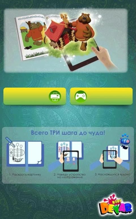 Эффект дополненной реальности (Augmented Reality или эффект AR Coloring) даёт оживить раскрашенную картинку. В этом уникальном приложении вы можете раскрасить и оживить героев любимых сказок.