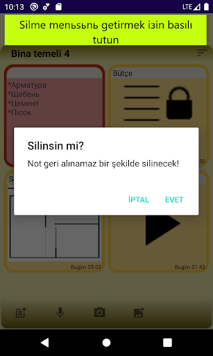 Ses, metin veya fotoğraf notu oluşturmak için ilgili simgeye tıklayın.