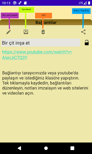Bağlantıları doğrudan üçüncü taraf uygulamalardan (tarayıcılar, youtube veya diğerleri) kaydedin, bunları istediğiniz gibi kategorilere ve klasörlere ayırın. Web sitelerini ve videoları doğrudan notlarınızdan açın.